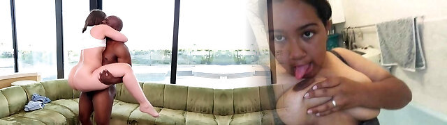 Thick bbw ebony bj's BBC and gets smashed on couch!