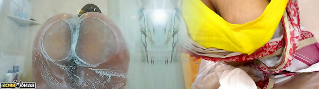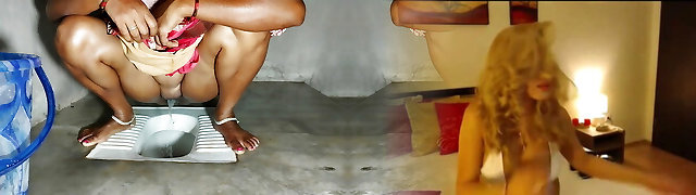 Aunty pissing in bathroom and I caught and I observe her big coochie and big boobs