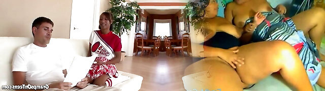 Dark-hued Teenage Cheerleader Gangbang