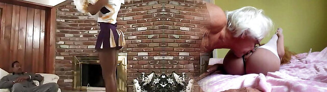 Black Cheerleader Teen Rimmed By Elderly Guy