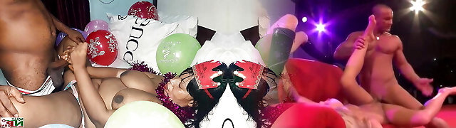 Christmas party gangbang session with four lusty dolls