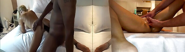 Blonde Hotwife takes huge black man-meat from behind