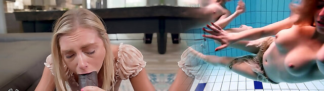Jenna Starr having joy while deep-throating a black cock in the pool
