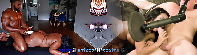 Super-hot plumpy slut with a fat ass tries to handle extremely big black dick in her mouth and pussy