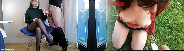 Handjob in Black Pantyhose and Soles Fuck - Cum on Nylon Feet