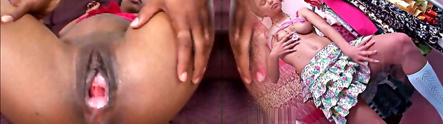 Perveted Girl Ebony shows off her nice meaty backside and delicious pulsing pussy while ejaculating multiples