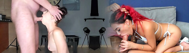 Petite slut deepthroat face fuck with foot locking