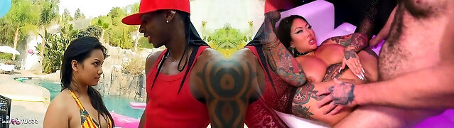 Three Way Interracial fuck with Hardcore Asian Milf