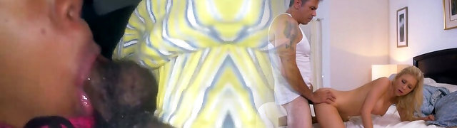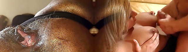 Three Dimensional cuckold! Horny young blonde fucked hard by a big ebony cock