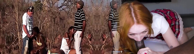 Extremely wild redhead Pepper Hart likes being gang banged by black studs