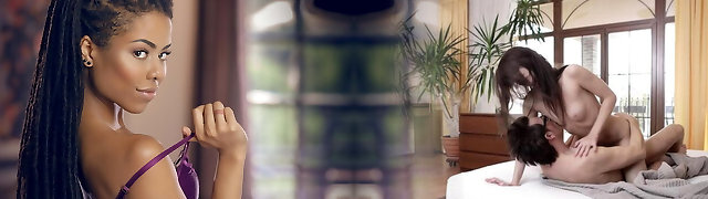 Gorgeous Black Beauty Angel Eyes Rides A Big Black Cock