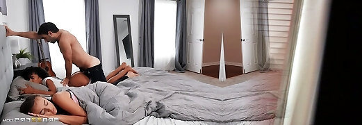 Syren De Mer and Francys Belle are using a sway while having a threesome with a black man