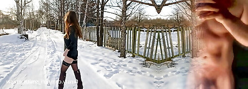 Walk bare in a snowy village
