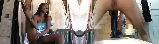 Sporty dark-hued sluts share a massive white dick after a workout