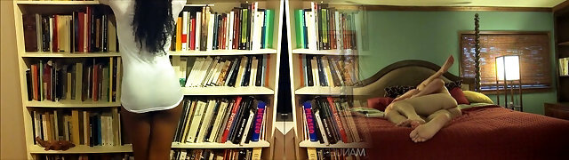 Ebony lesbian frigging for white brunette girl