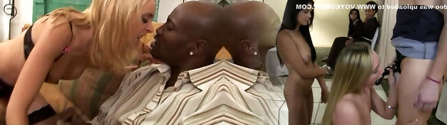 Big dark-hued dudes take turns banging flexible white floozie