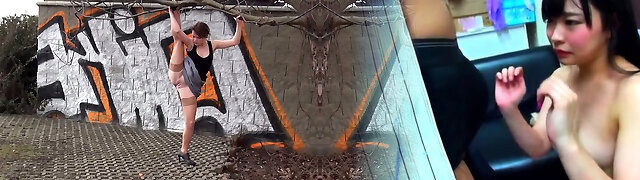 Wondrous pliable ebony haired babe gets fucked in a weird way