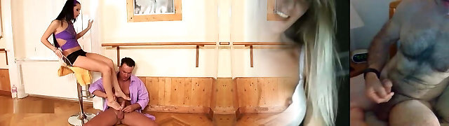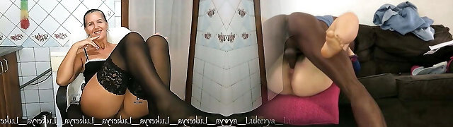 Ass-fuck sex and a feet cumshot with a skinny Milf with glasses