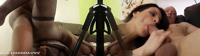 Chick with big milkings after Blowjob Negro stretched her gams and gave h...