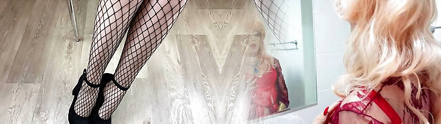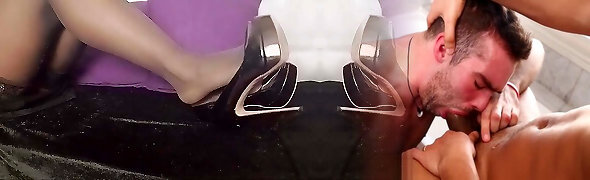 Mistress in black high heels allowed me to jerk off on her legs and cum on her feet