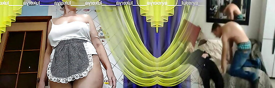 The Hot Housewife Lukeri meets the day in the kitchen with softcore cleaning and a cheery flirting