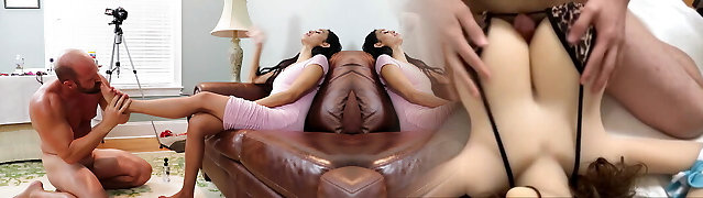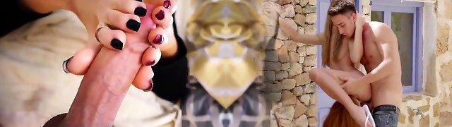 Elegant Brunette Giving A Mind-blowing Footjob And Handjob On The Sofa