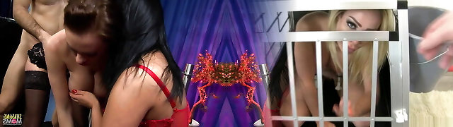 Super ginormous boobed domme in black stuff makes dude eat her pussy