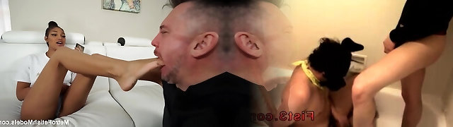 Ebony hottie Luna Corazon gives her head and provides white man with a excellent feetjob