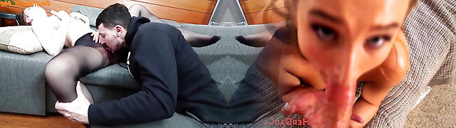 Teen with Big Tits in Black Pantyhose - Handjob, cum on feet