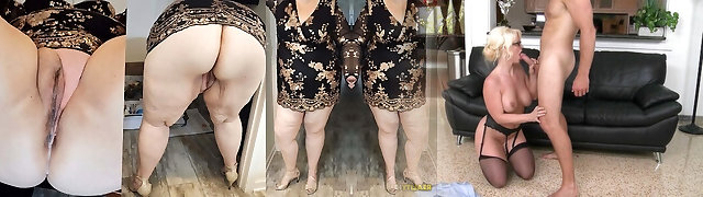 Fat bbw ssbbw busty mature chubby plus-size white cougar in mini dress showing her big giant booty butt and gets lots of pussy cum