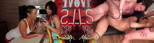 Busty grannies SpeedyBee and Molly MILF try young black spunk-pump for first time