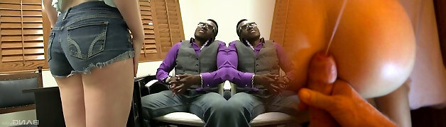 Fantastic light haired assistant provides her boss's black cock with Hand Job and BJ