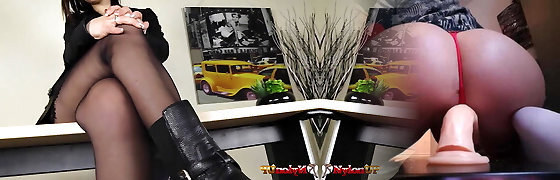Watch the diminutive landing strip of hair on top of Petra's pussy through her ebony tights
