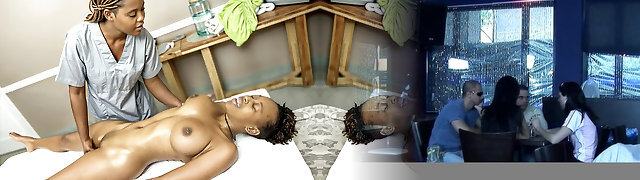 Mandingo fucks spectacular black client Nia Nacci on the rubdown table