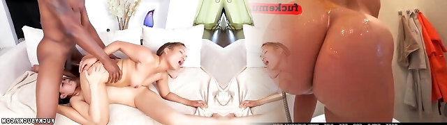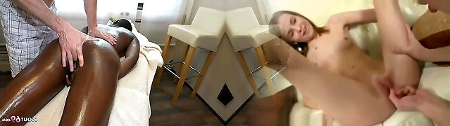 She gets a massage from her stepdad and ends up sucking his huge black cock - dark-hued porn