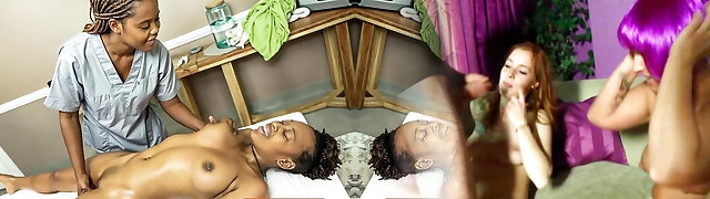 African Lesbian Masseuse Her Busty Horny Client Squirt Loudly
