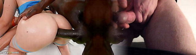 Black huge-titted chick enjoys when her shagger stiffs his huge pecker in her raw twat and taut asshole