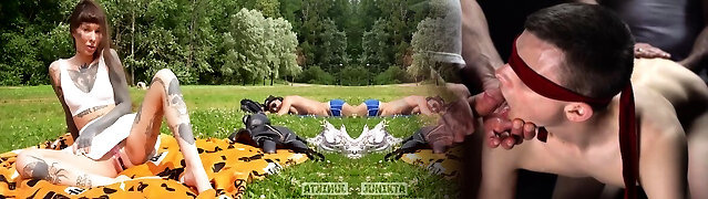 Black threesome - Lesbians squirts outdoors