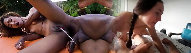 Ebony lesbos squirting milk enemas