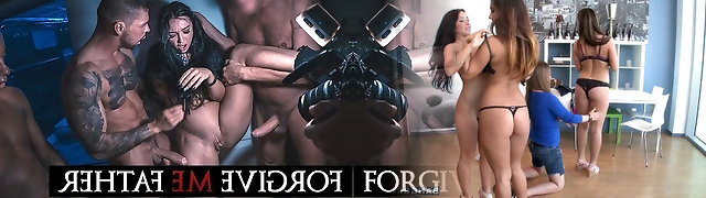 Forgive Me Daddy - rock chick with big tits pleasured by 3 big jizz-shotguns in filthy rough xxx foursome scene