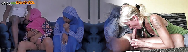 Ebony stepmother and stepdaughter share the black boner