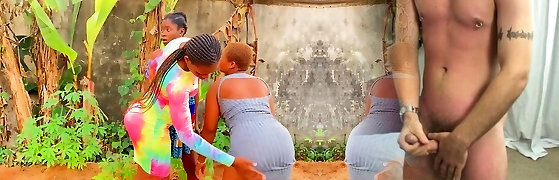 Two African Girls Give A 4 Forearms Rubdown To Their Huge Cock White Customer
