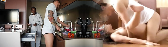 VR BANGERS – FFM Interracial Threesome In The Kitchen