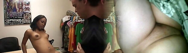 Tiny ebony honey gets her juicy pussy squeezed by white guy