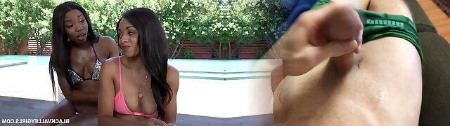 Nice jugs black amateur duo babes suck and fuck a white dong