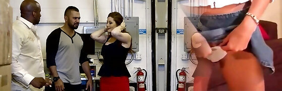 Sneaky big ass plumper housewife dresses in a very short mini-skirt to seduce the kinky boss in front of his wife