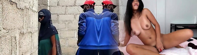 Big-boobed Nigerian slut fucking in an uncompleted building.