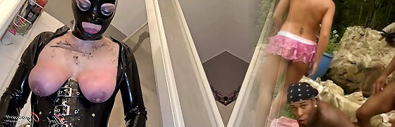 Three Milky Dominant Sluts Humiliate and Strapon Fuck Black Fuy in BDSM