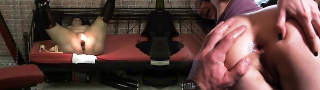 Black sausage wrecks submissive white girl's ass in BDSM scene