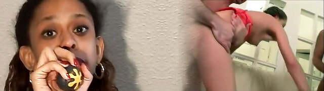Ebony Teen Bound Down and Spit Roasted by Two BBC's
